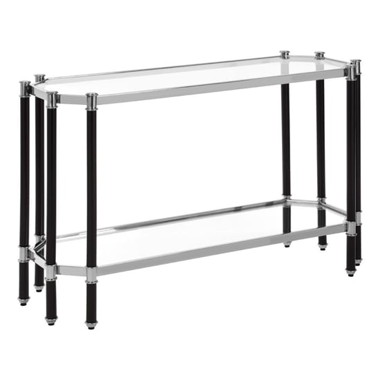 Allessa Clear Glass Console Table With Black And Silver Frame