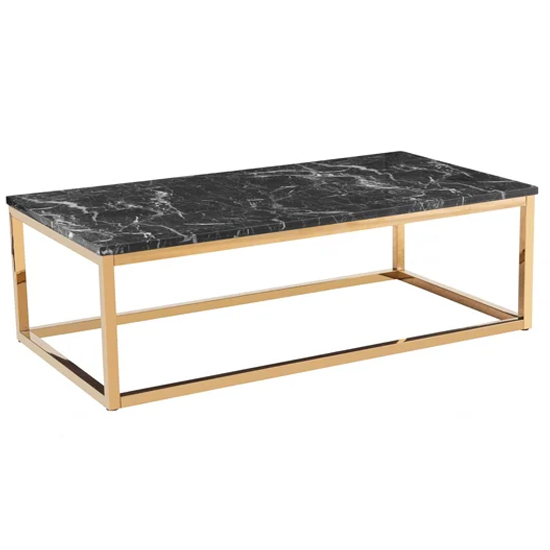 Cantara Marble Effect Wooden Coffee Table With Gold Metal Frame
