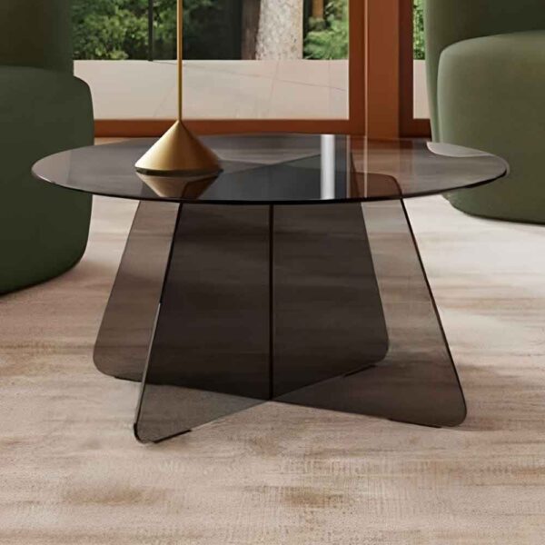 Add contemporary charm and understated sophistication to your home with the Furniture in Fashion Selbyville Glass Round Coffee Table – Smoked. Designed with a cohesive smoked tempered glass top and base, this round coffee table creates a seamless, stylish focal point in your living room or seating area. Its warm smoked glass finish delivers a refined look that pairs beautifully with modern, minimalist, and transitional decor themes. Crafted for daily use as well as visual appeal, the Selbyville coffee table combines tempered glass strength with a versatile round silhouette. Perfect for placing drinks, decor, books, or accessories, it keeps your space looking contemporary and clean while offering a durable surface that resists wear. FEATURES : Material : Tempered Glass Finish : Smoked Constructed with high-quality smoked tempered glass for a sleek, warm finish that adds depth and style to your living space Classic circular tabletop enhances visual flow and softens room lines, making it ideal for both small and large seating areas Base made from matching smoked tempered glass for a cohesive, modern aesthetic Neutral smoked glass finish complements diverse decor, from contemporary to minimalistic interiors Ideal for holding drinks, decor pieces, books, or snacks in living rooms and sitting areas Toughened glass improves safety and resistance to daily use Works beautifully with a range of decor themes from contemporary to transitional Smooth glass surface wipes clean easily for lasting clarity and shine Round shape keeps your space open and inviting without sacrificing functionality Available at an affordable price Images shown are for illustration purpose only DIMENSIONS : Height : 40cm Diameter : 80cm