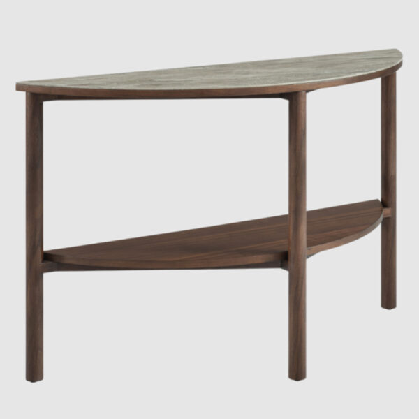 Add a touch of refined elegance to your hallway, living room or entryway with the Furniture in Fashion Wilmot Wooden Console Table. Beautifully crafted with a warm walnut wood finish and topped with a luxurious marble-effect glass surface, this stunning console table is perfect for displaying decor, holding essentials or elevating the style of any room. Its sleek, contemporary design makes it a standout addition to modern and transitional interiors. Whether youre looking to enhance your hallway or bring structure to your living space, the Wilmot Console Table delivers both form and function. Designed with attention to detail by Furniture in Fashion, one of the UKs leading online furniture brands, this piece brings together premium materials, modern aesthetics and practical design for a versatile and eye-catching furniture solution. FEATURES : Material : MDF, Glass Finish : Tobacco Walnut, Marble Effect Particle Board with 0. 6mm Veneer Marble Effect Glass Top Storage Shelf Cylindrical Veneer Legs Use Coasters to protect the Surface The Wilmot curved console is a beautifully designed piece The curved top and shelve gives this piece a stylish and modern look with the elegant t design legs to match The console will defiantly make your living room stand out Available at an affordable price Images shown are for illustration purpose only DIMENSIONS : Height : 750mm Width : 1200mm Depth : 390mm
